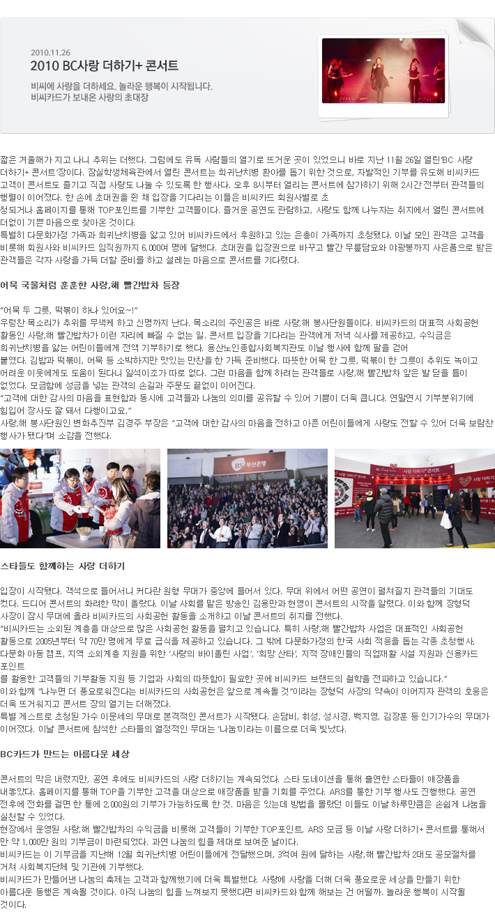 | 제목 | 사랑 더하기 콘서트 | 등록일 | 2010.11.26 |