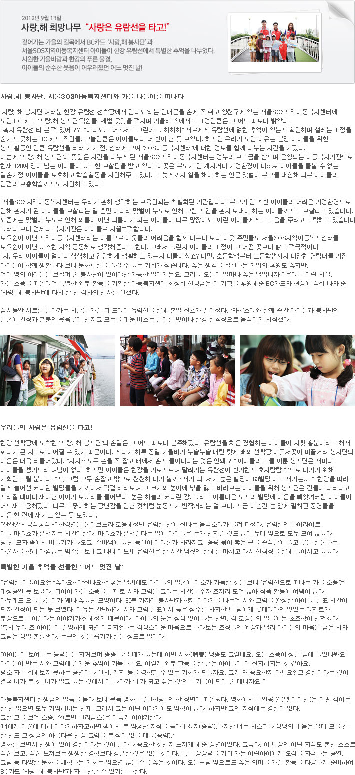 | 60 | BC카드 자매센터 아이들과 함께 사랑,해 희망나무 홈커밍 | 2015.04.01 |