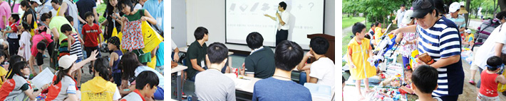 하이, 헬로, 안녕! 여름방학이 시작된 지난 7월 말, 남들보다 뜻깊게 방학을 시작한 친구들이 서울 보라매공원에 삼삼오오 모여들었다. BC카드는 2011년부터 서울시 교육청과 협약을 맺고 청소년 교육복지 지원사업을 시행하고 있다. 올해는 서울에 거주하고 있는 고등학생을 대상으로 180명의 사랑,해 스쿨천사를 선발하여 매달 소정의 장학금을 지급하고, 방학이 시작되면 진로 교육과 경제 교육을 진행하고 있다. 이번 교육에 모인 아이들은 최근 서울시 교육청과 MOU를 맺은 후 처음으로 진행되는 1기 스쿨천사들이다. 첫날, 보라매공원 내 위치한 청소년수련관에서 모인 아이들은 서먹해서 진땀을 빼고 있었다. 어색한 기운이 교실 전체에 감돌았을 때, 첫 수업이 시작되었다. 경제 개념을 간단히 배운 후 경제 전문 선생님 주도 아래 물물교환체험이 시작됐다. 한 시간 동안 눈만 깜박거리며, 앞만 보던 아이들이 우물쭈물 서성이다가 누가 먼저랄 것 없이 말을 하며 친해지기까지는 5분도 채걸리지 않았다. 두 번째 수업 테마는 주식. 아이들에게 주식이 어렵지 않게 눈높이 교육을 진행한 뒤 모의 주식 투자 체험을 시작했다. “친구들, 너무 활발해진 거 아니니?”라며 너털웃음을 터뜨린 선생님을 향해 “전 아무래도 주식 스타일 인가봐요~”라며 받아치며, 언제 어색했냐는 듯이 얼었던 교실 분위기가 사르르 녹았다. 경제를 품은 봉사 청소년기에 경제 개념뿐 아니라 인내심과 절제, 책임감 그리고 의사 결정 능력 등의 기본자세를 터득한다면 앞으로 살아가는 데에 넓은 혜안과 지혜가 생긴다고 한다. 아이들에게 험난한 세상을 지혜롭게 헤쳐나갈 수 있는 방법을 가르쳐주고 싶었던 BC카드. 2일차 교육은 바로 국제무역 활동과 봉사의 의미를 함께 가르쳐주는 것이다. 체험, 벼룩시장의 현장! 2일차 마지막 수업으로 봉사의 의미와 에티켓을 배운 학생들이 3일차에 드디어 경제 시장 실전에 돌입했다. 바로 벼룩시장. 다른 사람과 나누면 좋을 물건들을 가져와 보라매공원 안에 벼룩시장을 세웠다. 또 초등학생 참가자를 미리 모집하여 일대일로 매칭하여 멘토-멘티가 되어 조를 꾸려 물건을 팔기로 했다. “에이 학생, 좀 더 싸게 해주면 안될까?”라는 한 아주머니의 말에 “아주머니, 그럼 다른 것과 같이 사시면 좀 더 싸게 해드릴게요!”라며 이틀 동안 배웠던 경제 활동을 제대로 실천했다. “안 힘들어? 힘들면 잠깐 쉬어, 형이 팔아줄게!”라며 처음 만난 초등학생을 다독거리는 훈훈한 장면도 목격되었다. 판매하는 물건은 책부터 옷, 가방, 털모자와 털장갑 등 새것같지만 본인이 잘 쓰지 않는 물건들로 구성되었다. 눈길을 쉽게 끄는 그림 동화책이 판매 수익 1순위 물품. 그 밖에도 액세서리와 아기자기한 물품도 가장 많이 팔렸다. 전날 처럼 해가 많이 비추어 더우면 어떡하나 걱정했지만 다행히 해가 많이 비추지 않고, 시원하게 바람이 불어주어 지도 선생님들의 걱정은 바람과 함께 저 멀리 사라졌다. 보라매공원에 내려온 천사들 세 시간 동안 진행된 벼룩시장은 꽤 성황을 이뤘다. 주말이라 공원에 나온 사람들이 많아져 덕을 본 것. 어른들이 아니라 아이들이 돗자리를 펴고 앉아서 “가방 사세요” “책 싸게 드려요”라며 외치는 모습을 본 어른들은 기특하다며 물건들을 구매했다. 입소문으로 금세 손님들이 몰려왔을 때, 벼룩시장 한복판에서 꼬마 아이의 노랫소리가 들렸다. “개울가에 올챙이 한 마리 꼬물꼬물 헤엄치다 뒷다리가 쑤욱, 앞다리가 쑤욱, 팔짝팔짝 개구리 됐네!” 4살로 보이는 한 여자아이가 물건을 사던 엄마의 손을 뿌리치고, 물건을 팔던 오빠들 앞에서 작은 공연을 펼친 것이다. 모두들 벼룩시장을 뒤로하고, 꼬마 아이의 율동을 곁 들인 노래를 감상했다. “귀여워라, 다른 것 또 해봐!” 이번에는 귀요미송. 발음이 어눌했지만, 음은 정확했다. “일 더하기 일은 귀요미, 이더하기 이는 귀요미, 삼 더하기 삼은 귀요미” 한참을 아이들 앞에서 노래를 부르더니, 아장아장 걸어가 음료수도 마시고, 돗자리에 앉아 가방을 만지작거리며 놀기도 했다. 쇼핑을 마치고 돌아온 엄마를 보더니 “빠빠~”라며 손을 흔들어 보이며 오늘의 보라매공원 스타가 되었다. 보라매공원에 천사들이 벼룩시장을 열었더니, 아기 천사가 깜짝 방문한 것은 아닐까. 겨울에 또 만나요! 좌충우돌했던 벼룩시장을 끝내고, 수익금 일부를 기부하는 행사가 진행했는데 아이들은 기특하게도 전원 기부에 참여해주었다. 아이들의 기부금은 한국청소년연맹에 기부되어 어려운 청소년들과 소외된 이웃을 위해 사용된다. 적게는 1만5천원부터 많게는 9만3천8백원까지 다양한 수익을 낸 아이들을 위해 작은 시상식을 열었다. 지난 3일 동안 우수한 성적을 낸 경제스쿨학생상, 벼룩시장 우수 판매상, 벼룩시장 수익 최고 기부액상, 독창적인 방법으로 물건을 판매한 팀을 위해 준비한 상까지 수상자에게 소정의 문화상품권을 증정하기로 했다. 여기에 BC카드에서 준비한 기념품은 덤. 꼼꼼한 성격으로 최고 수익을 얻은 한 학생은 “3일 중에 벼룩시장이 제일 재미있었어요!”라며 활짝 웃어 보였고, “평소 주식 투자에 