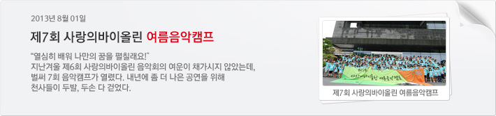 제목 제7회 사랑의바이올린 여름음악캠프 등록일 2013.08.01