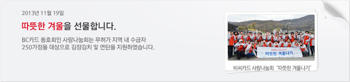이번 겨울은 온 세상에 따뜻한 사랑이 모여 춥지 않은 겨울이 되었으면 좋겠습니다.