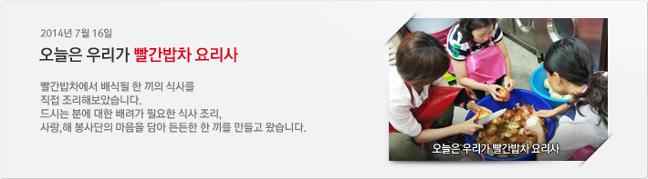 | 제목 | 오늘은 우리가 빨간밥차 요리사 | 등록일 | 2014.07.16 |