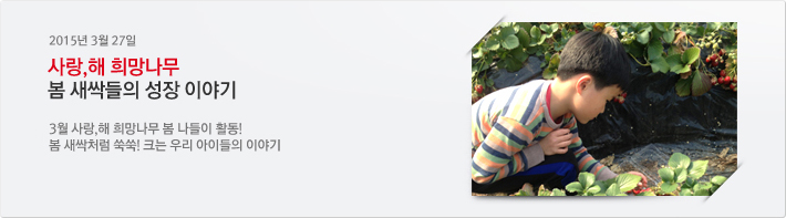 | 제목 | 사랑,해 희망나무 봄 새싹들의 성장 이야기 | 등록일 | 2015.03.27 |