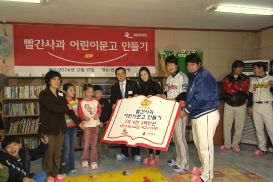 2006 프로야구 홈런왕 이대호 선수를 비롯, 2006년 잠실구장에 설치된 '비씨카드 홈런존'으로 홈런타구를 친 16명의 선수들은 13일(수) 오후 2시 서울 강북구 미아동 반도 지역아동센터에 500만원 상당의 어린이용 신간서적을 기증하는 행사를 가졌다.