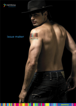 남성과 여성모델의 두가지 디자인으로 발급되는 레인보우카드는 패션잡지에서 무채색계통의 화보사진을 잘라낸 듯한 이미지를 기본베이스로 하여 모델이 착용하고 있는 선글라스와 넥타이에만 레인보우색상을 가미하여 요즘 젊은세대들에게 환영받는 Trendsetter와 issuemaker를 감성적으로 표현하고 있다.