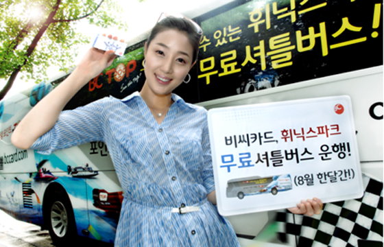비씨카드(대표이사 사장 장형덕)는 신개념 포인트 TOP 서비스 오픈을 기념하여 여름 휴가 시즌 보광휘닉스파크를 이용하는 비씨카드 고객들에게 무료 셔틀버스 운행 서비스를 제공하는 이벤트를 8월 30일까지 시행한다. 비씨카드가 운행하는 무료 셔틀버스는 서울 ↔ 평창 보광휘닉스파크 구간 왕복 노선으로 8월 30일까지 매일 운영하고 비씨카드 홈페이지(www.bccard.com) 에서 사전 이용예약을 하는 고객을 대상으로 이벤트 기간 중 1인당 왕복 2좌석을 선착순으로 제공한다(단, 최근 3개월간 카드 사용실적이 10만원 이상인 고객 대상) 이벤트 기간 중 1인당 1회(상, 하행선 왕복기준 1회) 신청이 가능하며 홈페이지에서 예약이 완료 되면 예약 확인 후 반드시 확인쿠폰을 출력하여 셔틀버스를 탑승하기전 제시해야 한다. 무료 셔틀버스는 하행선(서울 → 휘닉스파크)의 경우 매일 2회 운행 하며 탑승장소 (탑승시간)는 동대문운동장역 11번 출구앞(오전 08:00/10:00), 서초동 비씨카드 본사앞(오전 08:30/10:30), 잠실 종합운동장역 1번 출구앞(오전 09:00/11:00)이다. 상행선(휘닉스파크 → 서울)은 휘닉스파크 센터플라자 정문앞에서 매일 오후 2시, 6시 2회 운행하며 서울 도착시 경우지는 잠실역 - 삼성역 - 동대문운동장역이다. 보다 자세한 노선 및 시간과 탑승 장소는 비씨카드 홈페이지를 참고하면 된다. [운행 노선 및 시간표] ■ 서울 → 휘닉스파크(하행선)