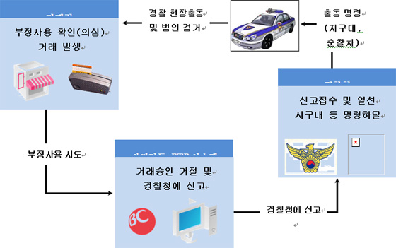 부정사용 꼼짝마!! 비씨 FTR 시스템 가동 - 부정사용으로 확인 또는 의심되는 거래에 대해 실시간으로 경찰청에 자동 신고