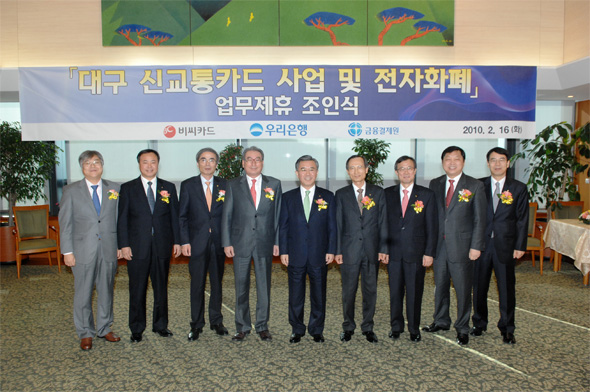 비씨카드, 전자화폐 참여 은행과 대구시 신교통카드 확대 및 전자화폐 사업활성화를 위한 MOU체결 - 비씨카드, 전자화폐 참여 금융권, 금융결제원, 전자화폐 보급 활성화 및 교통카드 사업 확대를 위해 상호 협력키로