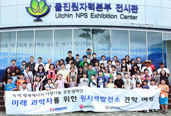 사진설명) BC카드는 녹색체험 프로그램의 일환으로 자사 고객들을 대상으로 11월까지 ‘미래 과학자를 위한 원자력 발전소 견학 여행’ 행사를 진행하고 있다. 사진은 16일 행사 참가자 전원이 울진원자력본부 전시관 앞에서 단체 기념촬영을 하는 모습 BC카드(대표이사 사장 장형덕, www.bccard.com)는 지난 16일 울진원자력발전소에 청소년 및 학부모 74명을 초청해‘미래 과학자를 위한 원자력 발전소 견학 여행’행사를 진행했다.이번 행사는 BC카드가 지난 3월 한국전력공사, 한국에너지재단과‘녹색 행복에너지 사랑나눔 공동캠페인’협약을 체결하고 녹색에너지에 대한 국민적 관심을 높이기 위해 진행하는 녹색체험 프로그램의 일환으로 4월부터 11월까지 총 1,000명의 참가자를 대상으로 친환경 에너지의 보고인 원자력 발전소 견학 기회를 제공하게 된다. 견학 프로그램 신청은 9월까지도 가능하며, 전기요금을 BC카드로 자동납부 신청한 고객 중 BC카드 홈페이지를 통해 ‘녹색에너지 체험학습’을 신청하면 매월 80명을 선발해 울진, 월성, 영광, 고리에 있는 원자력 발전소 견학 기회와 사은품을 제공한다. ‘발전소 견학 여행’은 미취학 아동을 포함하여 초등학생, 중학생이 보호자1인과 동반해 참여할 수 있으며 원전 운전현황 및 원전 설비 견학 등을 통해 발전원리에 대해 학습하고, 레크레이션 시간을 통해 에너지 지식 및 전기 안전 예방교육을 받게 된다. 이 외에도 견학 프로그램에 참여하는 청소년들에게 지역문화 체험의 기회를 제공하기 위해 방문하는 지역의 관광지 탐방을 함께 진행한다. BC카드는 녹색체험 프로그램 시행 이외에 에너지 빈곤층 지원을 위해 1억 5천만원 기부금 전달 등 에너지 복지사업에 대해 적극적인 관심을 보이고 있다. BC카드 관계자는 “앞으로도 범국가적 이슈인 녹색발전에 기여할 수 있는 다양한 고객 참여 프로그램을 운영할 계획이다”고 밝혔다. |