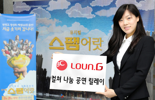 BC카드가 운영하는 프리미엄 문화•공연 서비스 ‘Loun.G’ (http://loung.bccard.com)는 수준 높은 뮤지컬 공연 티켓을 절반 가격에 판매하고, 문화소외계층에게 공연 관람의 기회를 선사하며 나눔을 실천하는 ‘Loun.G 컬쳐 나눔 공연 릴레이’를 진행한다.