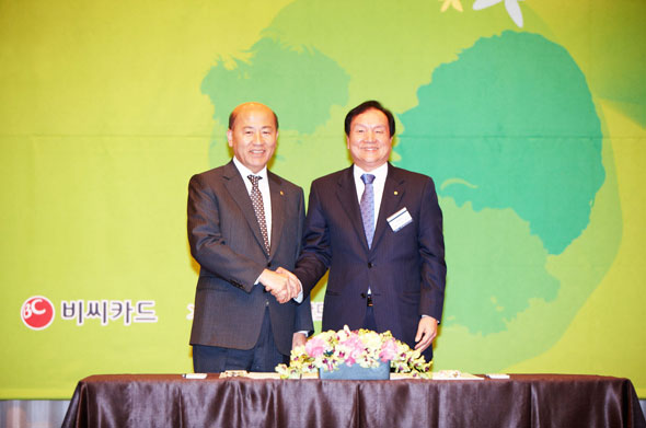 [사진설명] BC카드는 5월 4일 (수), 서울 르네상스호텔에서 환경부와 27개 참여기업이 참석한 가운데 그린카드 발급 MOU를 체결했다. 사진은 BC카드 이종호 사장(오른쪽)이 환경부 이만의 장관(왼쪽)과 MOU를 체결한 모습 BC카드(대표이사 사장 이종호, www.bccard.com) 는 환경부의 그린카드 주관 운영사 및 발급사로서 4일(수) 서울 르네상스 호텔에서 환경부 및 27개의 참여기업과 함께 협약식을 체결하고 하반기 초부터 그린카드를 출시한다고 밝혔다. 환경부의 그린카드는 국민의 녹색생활 실천확대를 신용카드의 포인트 제도와 연계한 녹색 카드 상품이다. 그린카드는 ▶에너지를 절약하면 제공하는 탄소포인트(환경부와 지자체 제공) ▶친환경 제품 구매시 포인트 제공(협약식 참여기업) ▶카드사용 및 대중교통 이용시 포인트 제공(카드발급 은행 제공) ▶제휴가맹점 이용시 포인트를 적립(가맹점 제공) 해주고 이 모든 포인트는 에코머니(Ecomoney) 로 적립되어 적립된 포인트는 현금처럼 사용할 수 있는 점이 장점이다. 또한 공공기관 및 지자체가 운영하는 스포츠/문화/주차 등 시설물 이용시 할인 서비스도 제공될 예정이다. BC카드는 지난 4월 18일 환경부 그린카드의 주관 운영사 및 발급사로 선정된 바 있으며(KB카드는 발급사로 참여) 그린카드 운영에 필요한 제반 인프라를 구축ㆍ관리하고 BC카드 회원사를 통해 그린카드를 발급하는 업무를 맡게 된다. BC카드 관계자는 “BC카드가 환경부 그린카드의 주관 운영사 및 발급사로 참여할 수 있게 되어 매우 기쁘고 뜻깊게 생각한다” 면서 “그린카드의 성공적인 정착을 위한 제반 인프라 구축에 노력과 지원을 아끼지 않을 것” 이라고 밝혔다. |