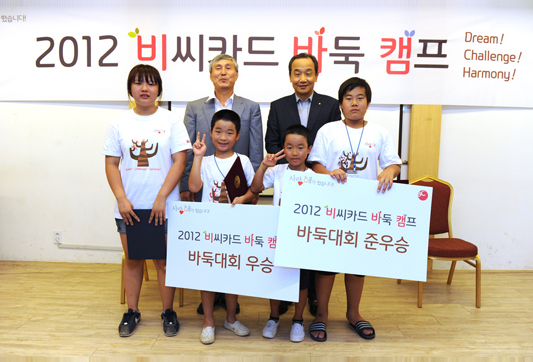 [사진설명] BC카드 이강태 사장이 지난 9일 자사가 지원하는 서울지역 아동복지센터 아동들과 함께 한 비씨카드 바둑캠프 행사에서 바둑대회 우승자들과 기념 촬영 모습 (사진 뒷편 좌측부터 조훈현 국수, 이강태 사장) BC카드(대표이사 사장 이강태, www.bccard.com)는 하계방학을 맞아 재능기부를 통해 나눔을 실천할 수 있는 “2012 비씨카드 바둑캠프(비바캠)“를 개최했다고 11일 밝혔다. “2012 비씨카드 바둑캠프”는 BC카드가 서울 지역 6개 아동복지센터에 지원하고 있는 바둑교실 참여 아동들을 초청하여 바둑을 매개로 ‘꿈을 향한 도전과 화합을 통한 성취의 기쁨’을 주기 위해 마련된 행사이다. 이번에 초청된 120명의 결연센터 아동들은 8월9일~10일 이틀간 강원도 홍천군에 소재한 리조트에서 바둑기사의 비전 특강, 바둑 골든벨, 바둑대회 등 다양한 바둑 프로그램을 통해 기량을 확인하고, 수상 레포츠 및 함께 만드는 바둑공예 등 화합을 다지는 즐거운 시간을 가졌다. 또한 이번 행사에는 한국기원소속 바둑기사 30여명이 직접 참여하여 비전특강 및 바둑 멘토링을 진행하여 바둑교육을 받는 아동들을 위한 행사의 의미를 더하였다. 특히 바둑대회에서 뛰어난 기량을 뽐낸 어린이들에게 BC카드 이강태 사장이 우승, 준우승 상을 수상하고, 한국기원을 대표하여 조훈현 국수가 특별상을 수상하였다. 이번 비바캠에는 비씨카드 ‘12년 신입사원 등 임직원 20여명이 진행 봉사자로 참여하여 아동들의 비전, 도전, 화합, 성취 과정에 대한 밀착 멘토링을 함께 진행하였다. BC카드 사회공헌 담당자는 ‘바둑대회 주최사로서 바둑보급을 위해 소외계층 어린이들에게 1년간 지원 해 온 바둑교실의 성과 확인 및 성취감 고취가 행사의 목적’ 이라고 말했다. 또한 봉사자로 참여한 신입사원 대표는 ‘BC카드에 입사하여 처음으로 맡은 중대한 역할이 사회공헌이라는 것에 큰 보람과 자부심을 느낀다”면서 “앞으로 BC카드에서 열심히 일하며 우리 사회에 꿈과 희망을 주는데 앞장서겠다”는 포부를 밝혔다. 한편 BC카드는 지난해 8월부터 아동복지의 사각지대에 있는 지역 아동들의 건전한 정서 발달을 위해 바둑교실을 지원하여, 장기적이고 체계적으로 어린이들의 성장을 돕고 있다. |