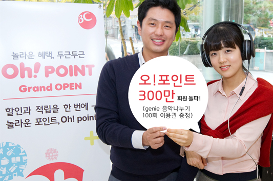 오! 불황기에도 300만 회원 가입 돌파, 오!포인트 - 할인과 적립 2가지 혜택을 동시에 주는 차별화된 혜택으로 가파른 성장세- kt지니(genie) 음악 나누기 100회 이용권, 11번가 최대 50%할인 등 프로모션진행 - 고객 증가에 더불어 가맹점도 빠르게 증가하여 2만5천여개 가맹점과 제휴