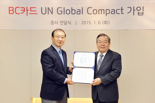 | 제목 | BC카드, 신용카드 업계 최초 유엔글로벌콤팩트(UNGC) 가입 | 등록일 | 2015.01.06 |