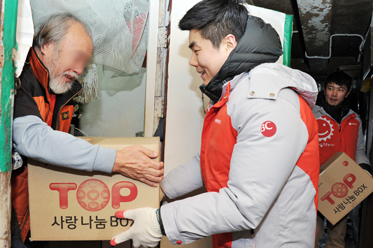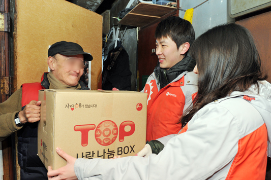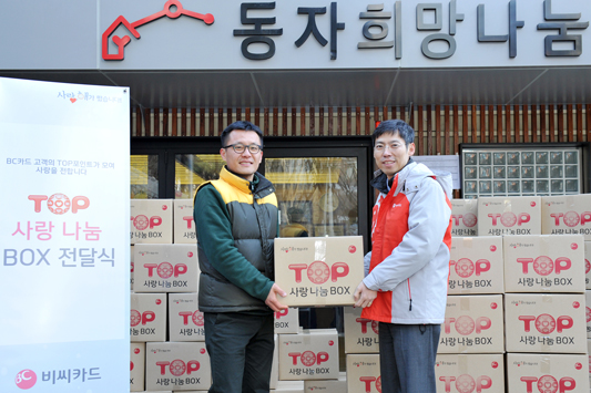 BC카드, 쪽방촌에서 사랑의 먹거리를 나누다 - 동자동 쪽방촌 거주 65세 이상 어르신 350가구에 쌀과 반찬을 담은 ´TOP 사랑 나눔 박스´ 전달- BC카드 신입사원 27명이 참석한 이 행사는 작년 11, 12월 진행된 TOP포인트 공익 연계 마케팅 일환 - 설날을 앞두고 전달한 12종 28개 먹거리로 독거노인들의 1.5평 남짓한 쪽방에 온정까지 나눔 BC카드(대표이사 사장 서준희, www.bccard.com)가 동자동 쪽방촌에 거주하는 65세 이상 어르신들에게 쌀과 반찬 등 먹거리를 담은 ´TOP 사랑 나눔 박스´를 나누는 행사를 가졌다. 이번 행사는 BC카드가 지난 해 11월부터 50일간 마케팅 활동을 펼치며 약속한 바 있는 "고객들에게 1천원권 편의점 모바일 상품권을 1백TOP포인트(100원 상당)에 할인 제공하고, 그 판매된 포인트 금액 기부"를 지키는 공익 연계 마케팅의 일환으로 진행되었다. 12일 오후 동자동 쪽방촌에 모인 BC카드 최정훈 상무(컨버전스사업본부장)과 신입사원 27명은 사전에 서울역쪽방상담소 측과 협의하여 선정한 ´온정´이 필요한 350가구를 일일이 방문하며 ´TOP 사랑 나눔박스´를 전달했다. 독거노인들이 거주하는 1.5평 남짓한 쪽방에는 쌀, 라면, 참치 통조림 등 12종 28개 식료품들이 쌓여 갔다. 행사에 참가한 BC카드 임직원은 "입춘이 지난 지 1주일이 지났지만 영하의 날씨가 계속되면서 더욱 춥게 느껴지는 설날을 앞두고 혼자 사시는 어른들과 조금이나마 따뜻함을 나눌 수 있어 기쁘게 생각한다"고 밝혔다. [사진설명 1, 2] 12일 BC카드 신입사원들이 동자동 쪽방촌 거주 어르신에게 쌀과 반찬 등 28개 식료품을 담은 ´TOP 사랑 나눔 BOX´를 전달하는 모습 ![]() ![]() [사진설명 3] 12일 BC카드 신입사원들이 동자동 쪽방촌 거주 어르신에게 전달할 쌀과 반찬 등 28개 식료품을 담은 ´TOP 사랑 나눔 BOX´를 나누다 ![]() [사진설명 4] 12일 동자동 쪽방촌 거주 어르신에게 쌀과 반찬 등 28개 생필품을 담은 ´TOP 사랑 나눔 BOX´ 전달식을 하고 있는 BC카드 컨버전스사업본부장 최정훈 상무(오른쪽)와 서울역쪽방상담소 전명재 실장(왼쪽)