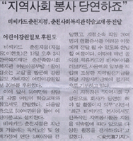 춘천지점은 지난 13일 오전 11시 한국복지재단 산하 춘천종합사회복지관에서 운영하는 저소득가정의 어린이를 위한 공부방인 "꿈이 샘솟는 교실(대표:최윤선)"에 50여 만원 상당의 각종 어린이 학습교재와 참고서를 구입하여 전달하였다.