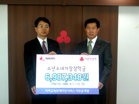 차단서비스(http://pc.bccard.com) 매출액의 1%를 네 달여간 적립하여, 어려운 가정 환경의