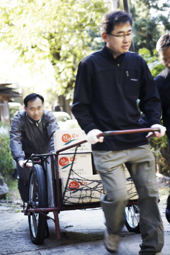 세상에서 가장 따뜻한 마음, 사랑을 전달합니다! 찬바람에 입김이 날 정도로 추웠던 날. 비씨카드 빨간사과봉사단은 능인종합사회복지관과 함께 강남구 개포2동에 위치한 무허가 판자촌 달터마을을 찾았다.1980년대 형성된 달터마을은 빈민촌,노인, 장애인, 한부모가정, 소년소녀가정 등 260여 세대가 살아가고 있다. 무허가로 지어진 낡은 집과 공동화장실, 마을 내 폐품 수거장과 같은 비위생적인 시설 등 다른 사람들보다 힘겨운 삶을 살아가고 있는 이곳 사람들은 매년 찾아오는 겨울이 그리 반갑지만은 않다. 이런 달터마을에 올해 겨울엔 산타클로스의 선물이 미리 도착했다. 비씨카드 빨간사과봉사단과 능인종합사회복지관은 달터마을 사람들에게 김장김치와 이불을 지원하고, 다섯가구의 도배와 장판 교체 등 월동지원사업을 펼쳤다.아침 9시30분. 능인종합사회복지관에 먼저 모인 13명의 빨간사과봉사단은 사회복지사로부터 오늘 봉사활동에 대한 사전지식과 자원봉사자교육을 받은 뒤 달터마을로 향했다. 나눔의 의미를 실천하러 온 때문일까. 봉사단들의 얼굴엔 추위도 녹여버릴미소가 한가득이다. 달터마을 입구에서 김치 나르기로 시작된 봉사활동. 리어카에 지원물품을 싣고 앞에서 끌고 뒤에서 밀고, 한사람이 한개씩 지원물품을 옮겼는데 어느새 봉사단들 서로가 징검다리를 만들고 있었다. 중간중간 누군가 내뱉은 '얼쑤!'하는 추임새는 서로의 웃음을 유발했고 그 웃음은 봉사활동을 전혀 힘들지 않게 만들었다. 여성분들은 조금 천천히 해도 된다는 남직원의 말에 봉사에 남녀가 어딨냐며 젖 먹던 힘까지 내는 여사우들. 환경정비사업의 일환으로 진행된 도배, 장판 공사에서는 추운날씨에도 아랑곳 없이 땀을 뻘뻘 흘리며 일하던 수습사원, 비씨카드 빨간사과봉사단의 붉은 조끼가 봉사에 대한 이들의 붉은 마음, 열정을 상징하는 듯 했다. 나눔, 자신이 더 행복해 지는 마법 "따뜻한 겨울 나세요." 겨울 내내 달터마을 사람들의밥상을 책임질 김장 김치와 사람의 체온처럼 따뜻한 이불을 전달하며 봉사단들은 따뜻한 말 한마디로 잊지 않는다. 점심식사 후 본격적으로 시작된 도배와 장판 교체 작업. 봉사단들은 일반 사람들이 하기 힘든 이 작업을 그 자리에서 도배 전문가들에게 하나하나 배워 '하는 척'이 아닌 '직접' 모든 작업을 해냈다. 어른 키만한 낮은 천장에 원래 있던 낡고 오래된 벽지를 뜯어내고 울지 않게 꼼꼼히 벽지를 발랐다. 또한 장롱 같은 무거운 물건에서 작은 세간살이 하나까지 직접 여기저기 옮겨가며 장판을 깔았다. 봉사단 모두 우리 집이라는 생각으로 정성을 다했다. 그리고 모자란 솜씨지만 마무리 청소까지 봉사단들의 마음은 전문가 못지 않았다. 다른 곳에서였다면 힘들다고 조금 꾀를 부릴만도 한데 모두들 앞장서 열심히 하는 걸 보니 '봉사는 힘든 일도 힘들지 않게 여겨지게 하고,누군가를 위해 시작했지만 하고 나면 자신이 더 행복해 지는 마법'이라는 말을 새삼 느끼게 된다. 비씨카드 빨간사과봉사단이 다녀간 달터마을엔 그냥 동그란 달이 아닌 하트모양의 사랑의 달이 올 겨울 내내 따뜻하게 빛나고 있을 것이다. |