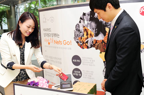 비씨카드 임직원과 함께하는 사랑,해 Net’s Go! 캠페인 비씨카드는 아프리카 어린이들을 돕기 위한 자선 전시회와 “사랑,해 Nets Go!” 캠페인을 서초동 본사사옥 로비에서 진행하였습니다. 김종우 작가(회화)와 안영상 작가(사진)의 자선 전시회 ‘아프리카를 본다, 아프리카 희망을 그리다’를 통해 판매된 작품의 판매가 30%를 아프리카 말라리아 퇴치를 위한 유엔재단의 “Nets Go!” 캠페인에 기부하였으며, 비씨카드의 임직원도 자선전시회 기간 중 카드결제 기부 캠페인인 “사랑,해 Nets Go!” 를 전개하여 기금을 조성하였습니다. 특히, 비씨카드는 임직원 조성기금만큼 매칭그랜트((Matching Grant)로 기부하였습니다. |