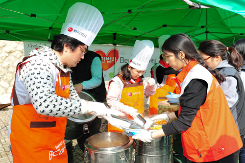 비씨카드 '사랑,해 빨간밥차 Beautiful Day' 행사 비씨카드는 2005년부터 매년 빨간밥차를 기증하여 무료급식 인프라를 제공하고 있으며, 매년 2회 비씨카드 임직원 약 100명이 참여하는 “사랑,해 빨간밥차 Beautiful Day” 행사를 진행하고 있습니다. 이 날은 비씨카드 임직원들 약 700명이 넘는 소외이웃들에게 갈비탕 배식을 돕고 빨간 무릎담요를 제공함으로써 따듯한 정을 함께 나누었습니다. |