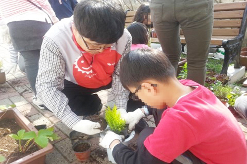 비씨카드 임직원들은 사랑,해 희망나무 결연센터인 강서지역아동복지센터 아이들과 센터 뒤뜰에 화분을 만들었습니다. 각자의 이름을 적어 책임감을 갖고 식물의 성장 과정을 직접 확인하여 관찰력을 기를 수 있도록 지도해 주었습니다.