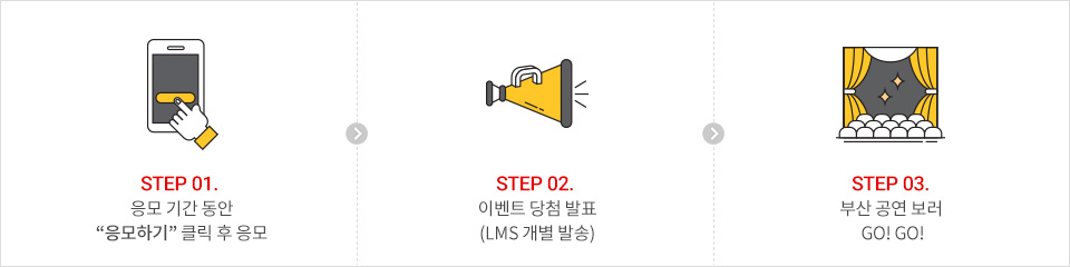 - 공연 관람 일시는 추첨 후 당첨되신 분들께 문자로 개별 공지 되며 초청 일시는 변경할 수 없습니다.