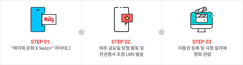 ※ 당첨자에게는 전관행사 참석 및 1달 영화 시청이 가능한 Seezn 프라임 무비팩이 제공됩니다.