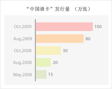 正因为“中国通卡”具备以上多种多样的权威性优势。所以在最近汇率下降、消费心理复活的基础上,以及到访中国的游客数量不断增加、2010年5月至10月举办上海世博会、11月即将举办广州亚运会的背景之下,预测未来“中国通卡”发行量还将继续增加。